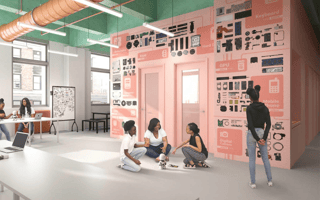 The lab is being constructed in partnership with design firm Kurani. As founder Danish Kurani explained in a statement to Built In NYC, the design of the space was created with the theme of “cracking open tech” in mind. “We designed the lab for kids to see how technology works inside,” said Kurani. The designer wants young women to ponder the inside a smartphone, wonder how a circuit board uses copper and to question the similarities between cameras and computers.