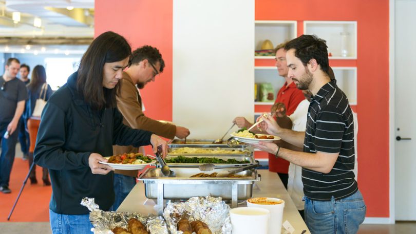 Foodie tradition: The company has a restaurant on-site, complete with a chef and barista. Employees can get made-to-order drinks and often enjoy eating lunch together every day, family style.