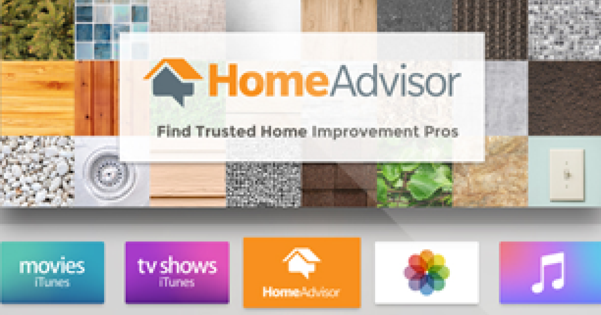 - HomeAdvisor’s Apple TV app gives homeowners the ability to book appointments with prescreened local home service professionals on their television using HomeAdvisor’s Instant Booking technology. Users can also view pricing for projects prior to booking using HomeAdvisor’s True Cost Guide. The HomeAdvisor app for Apple TV will be available later this year.